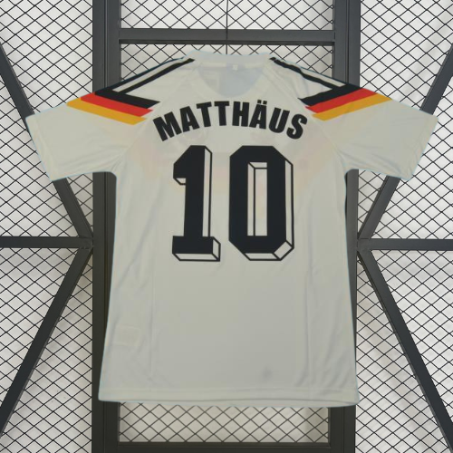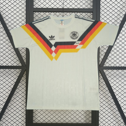 Luce con orgullo los colores de Alemania con la Colección Retro ’90, un diseño que recupera el icónico blanco de la selección con detalles negros, evocando la histórica Copa del Mundo en Italia 1990 y la elegancia y solidez que caracterizó al equipo alemán de esa época.