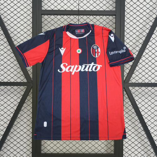 Luce con orgullo los colores del Bolonia FC con la primera equipación 2025/26, un diseño que combina el clásico rojo y azul del club con un estilo moderno y lleno de identidad.